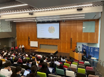 中央大学の附属校出身の大学生が講演し、生徒たちは身近な“先輩”の姿から、将来への具体的なイメージを膨らませました。